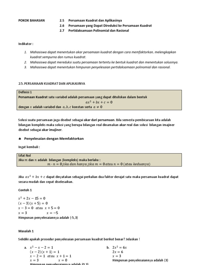 Semoga dapat bermanfaat untuk anda. Berikut contoh soal dan pembahasannya: Persamaan kuadrat menurut adalah suatu persamaan polinomial berorde dua. Bentuk umum dari persamaan kuadrat adalah: Soal dikumpulkan dari berbagai sumber dan pembahasannya dibuat sendiri oleh penulis.